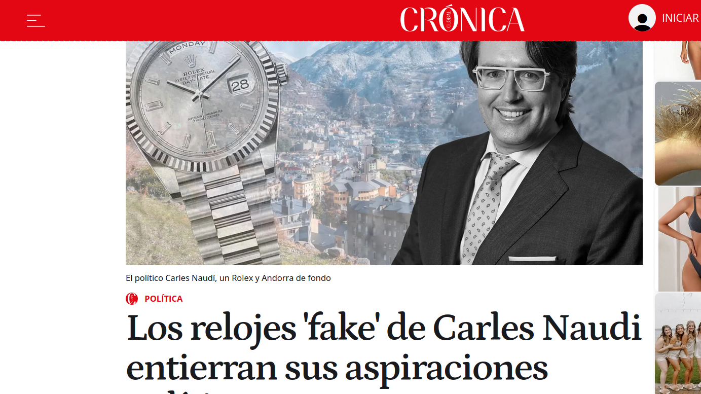 Carles Naudi, conseller de Ciutadans Compromesos, ha sortit al pas d’una publicació recent a Crónica Global que qüestionava la seva empresa, dedicada a personalitzar rellotges basats en models d’altres marques, i que, segons l’article, estaria afectant la seva reputació.
