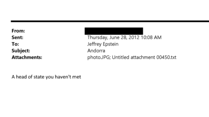 La reciente publicación de nuevos documentos del caso Jeffrey Epstein por parte del Departamento de Justicia de Estados Unidos ha sacado a la luz un correo electrónico con el asunto “Andorra”, enviado el 28 de junio de 2012 a las 10:08 horas.