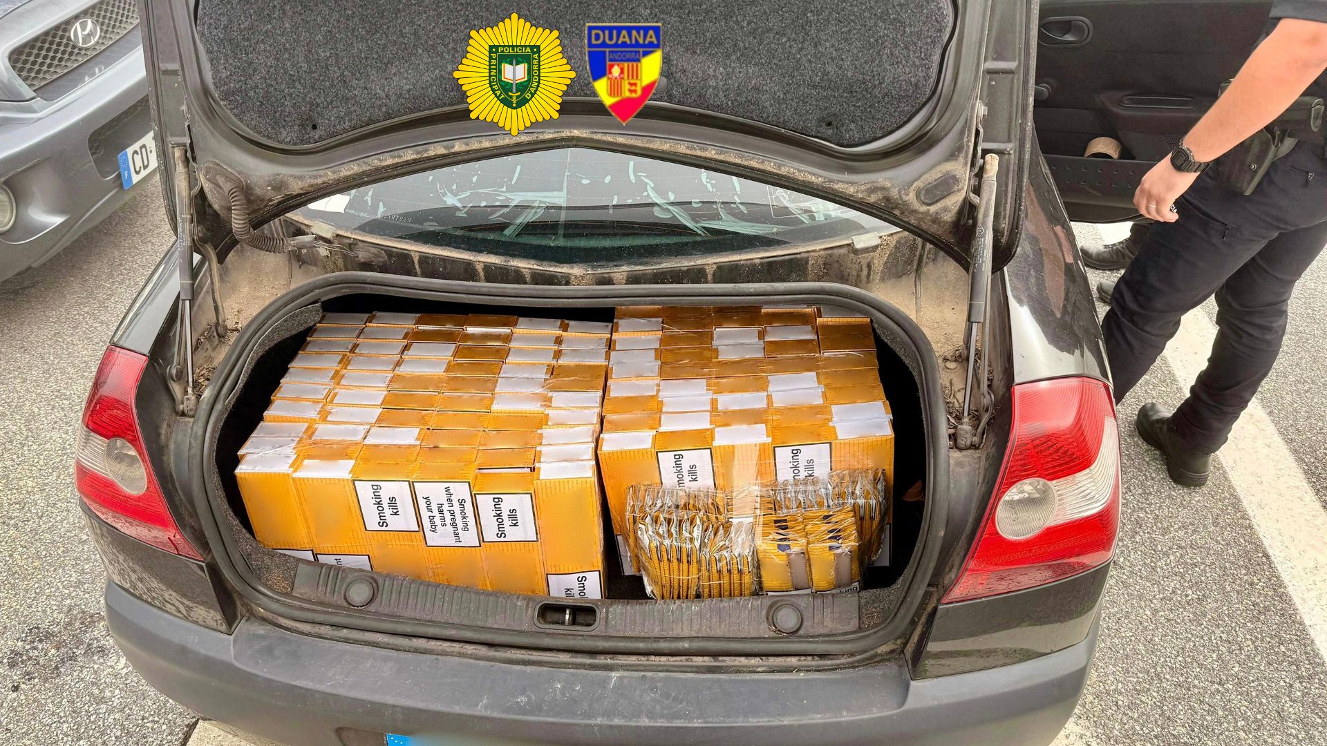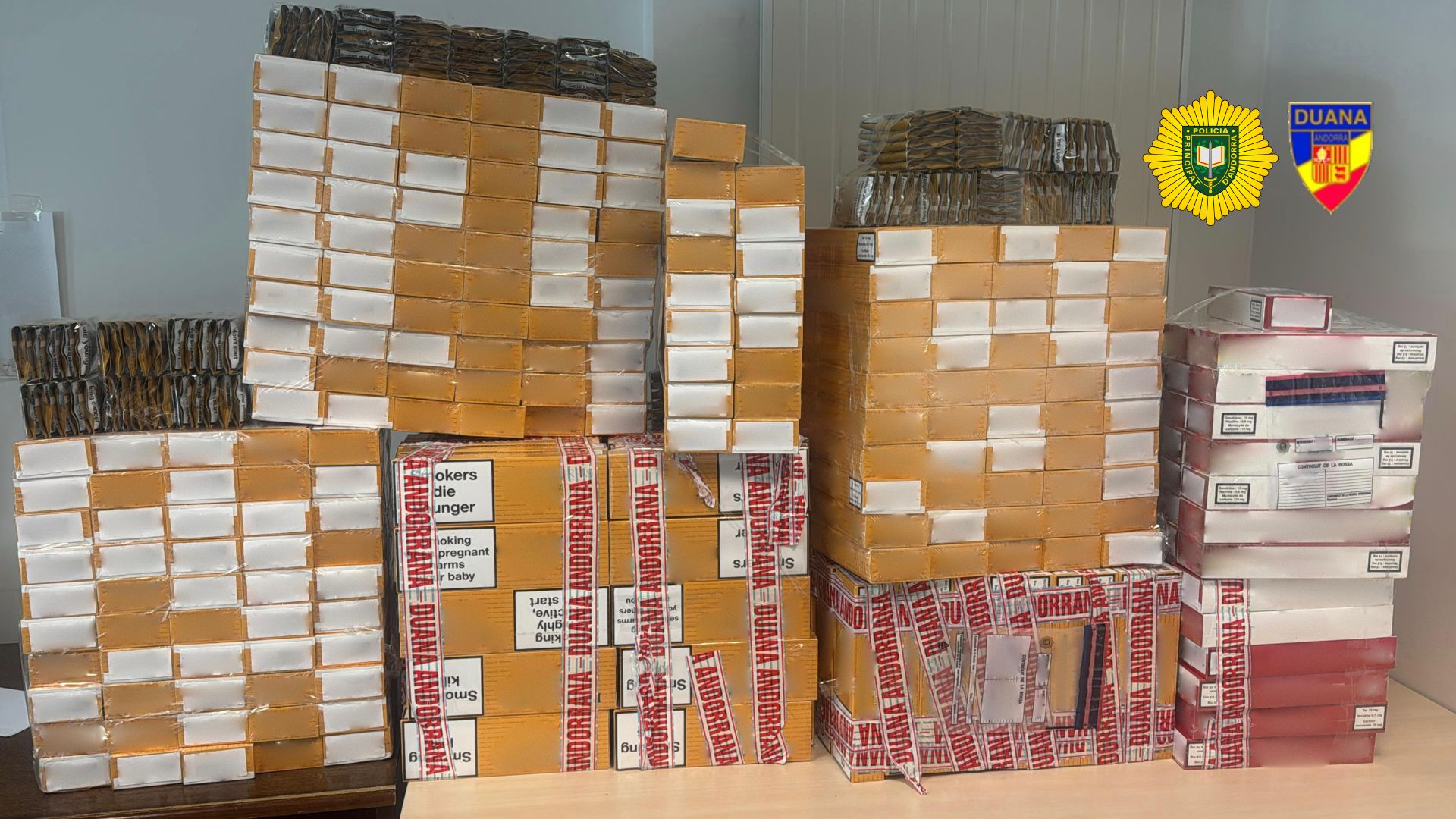 La Policía detuvo el viernes en el Pas de la Casa a dos hombres no residentes, de 21 y 35 años, como presuntos autores de delitos contra el orden socioeconómico, contra la función pública y contra la Administración de Justicia. Las detenciones forman parte de una operación conjunta con la Aduana que permitió comisar cerca de 15.000 euros en tabaco de contrabando e intervenir tres vehículos.