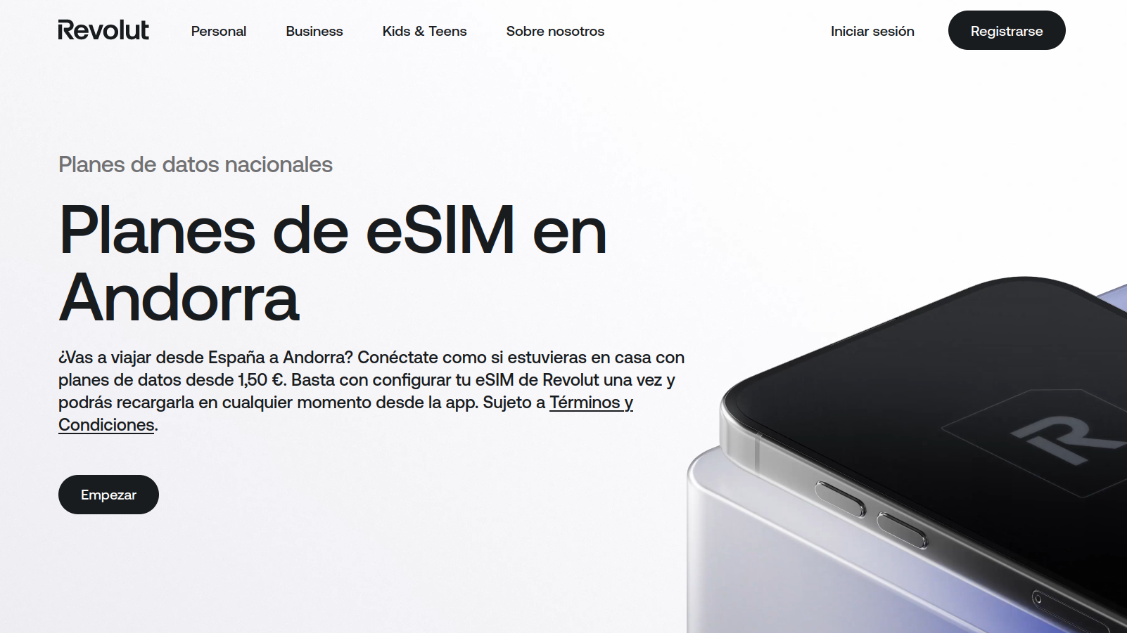 Unirse a Revolut: descarga la aplicación en un dispositivo compatible con eSIM y abre una cuenta.