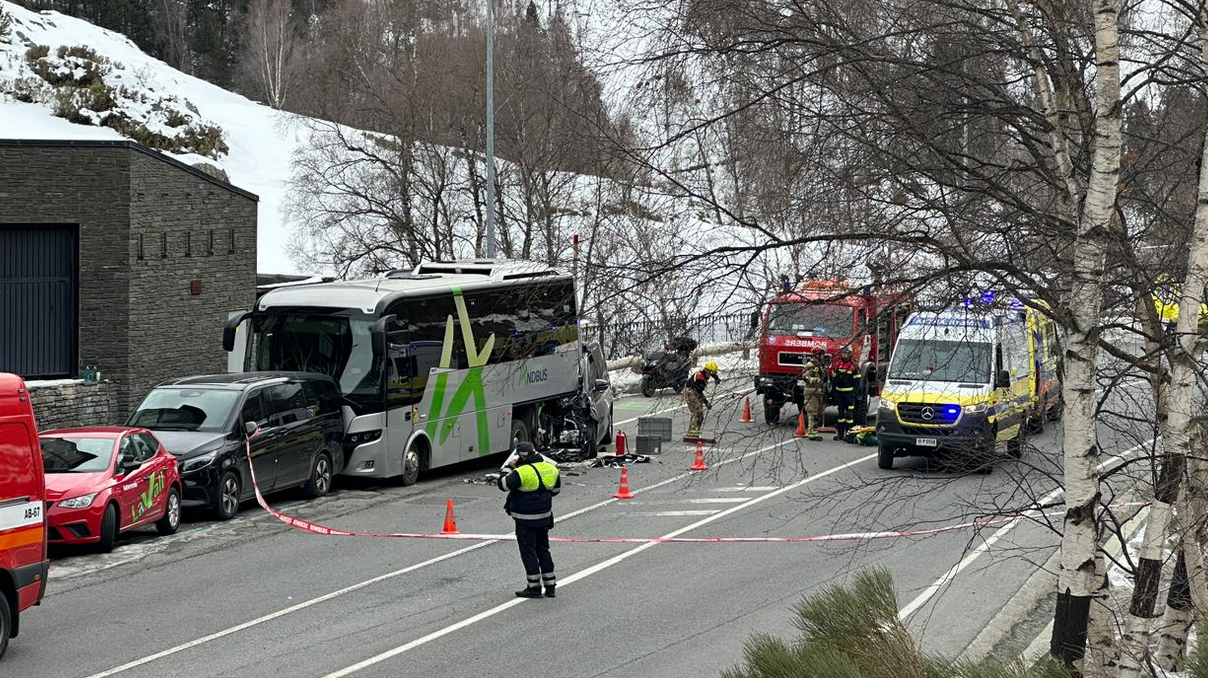 L’accident s’ha produït cap a les 14.40 hores, quan una furgoneta de color negre amb matrícula espanyola s’ha encastat violentament contra la part posterior d’un autobús del país.
