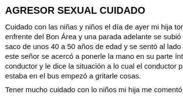 Segons el relat publicat, els fets haurien passat el matí del dia anterior quan una menor va agafar l’autobús a la parada situada davant del BonÀrea de Sant Julià. Una parada més endavant hauria pujat un home d’entre 40 i 50 anys, descrit com a vestit amb una camisa de quadres, que s'hauria assegut prop d’una nena d’entre 10 i 12 anys.