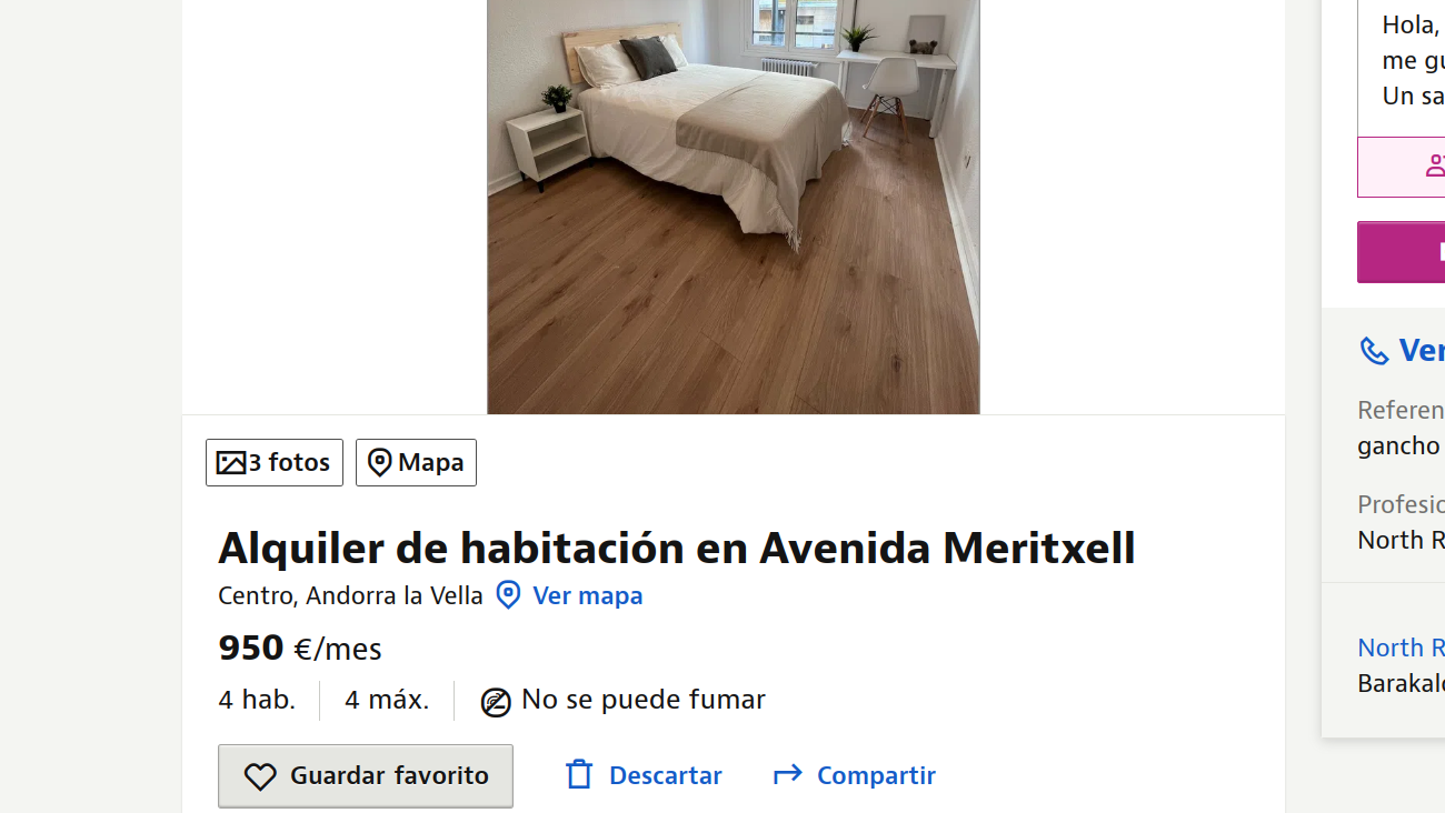Segons l’anunci, l'habitació disposa de llit doble, armari ampli, escriptori per a teletreball o estudi i finestra exterior amb llum natural, mentre que els companys de pis són descrits com a responsables i respectuosos. Malgrat això, el preu continua sent prohibitiu per a moltes persones que treballen o estudien al Principat.