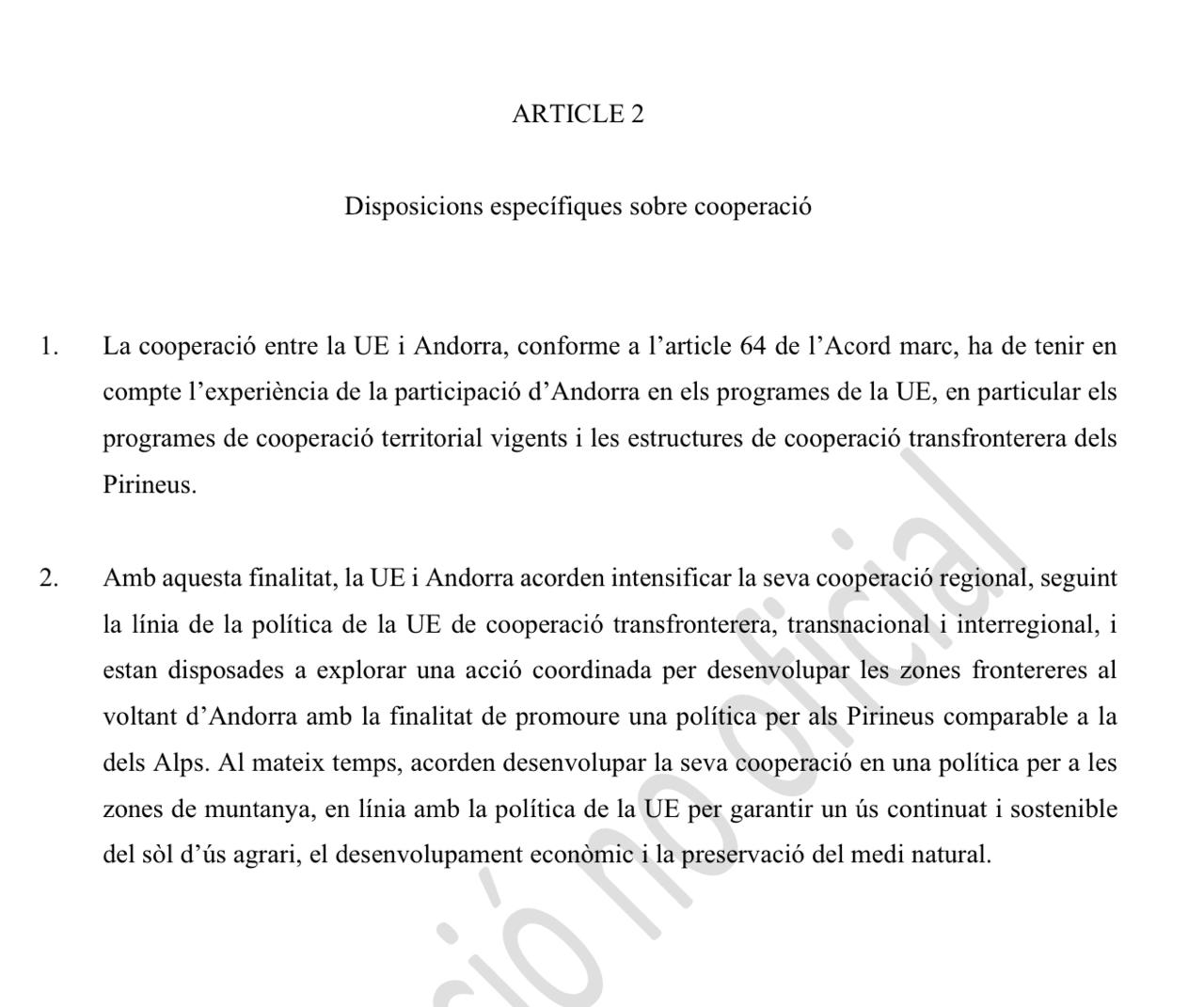 Rebutjar l’acord d'associació complicaria significativament la participació d’Andorra en projectes transfronterers. “Sense l’acord, el reconeixement de l’espai Andorra-Pirineus deixaria de existir, i desapareixerien tant el fonament jurídic com l’institucional que garanteix el suport de la Unió Europea a aquest espai i als projectes que s’hi desenvolupen”, ha advertit l’ambaixadora.