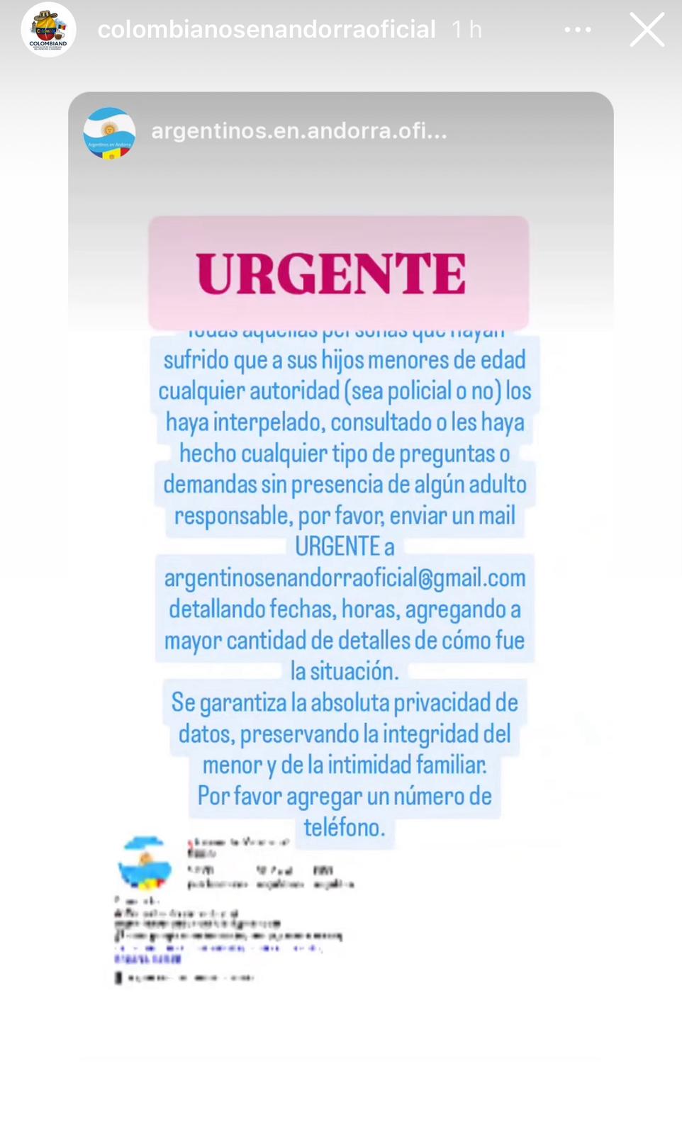 La asociación Argentinos en Andorra ha publicado un comunicado en el que solicita la colaboración de familias que hayan vivido situaciones en las que sus hijos menores de edad hayan sido interpelados, consultados o requeridos por alguna autoridad sin la presencia de un adulto responsable.