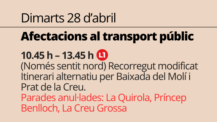 - De 15.40 a 16.20 horas, quedará anulada la parada del Estadi Comunal.