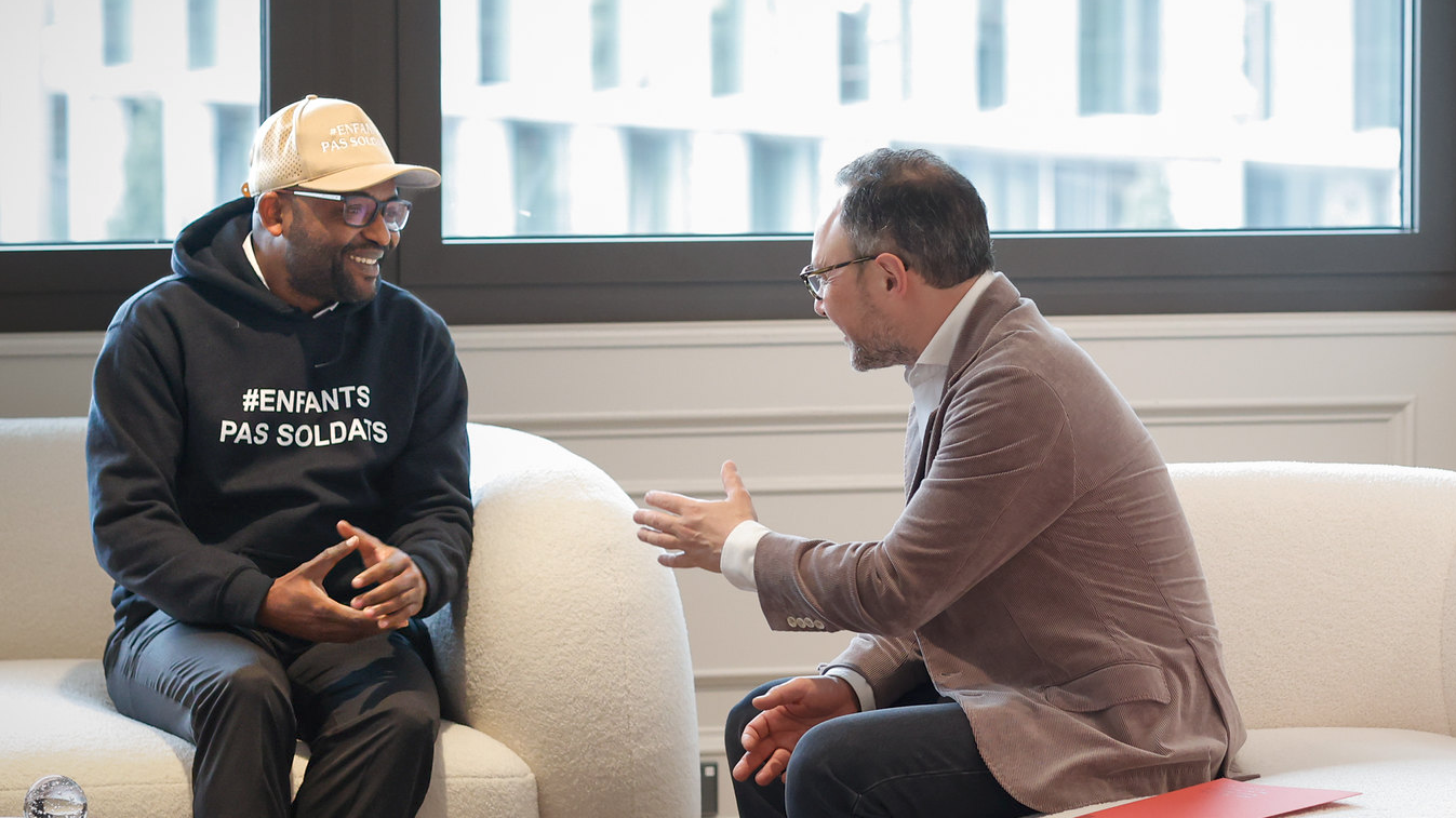 Durante el encuentro, Nzita, acompañado de la presidenta de Paix pour l’Enfance, Mounira Van Buel Amdouni, presentó dos iniciativas clave: